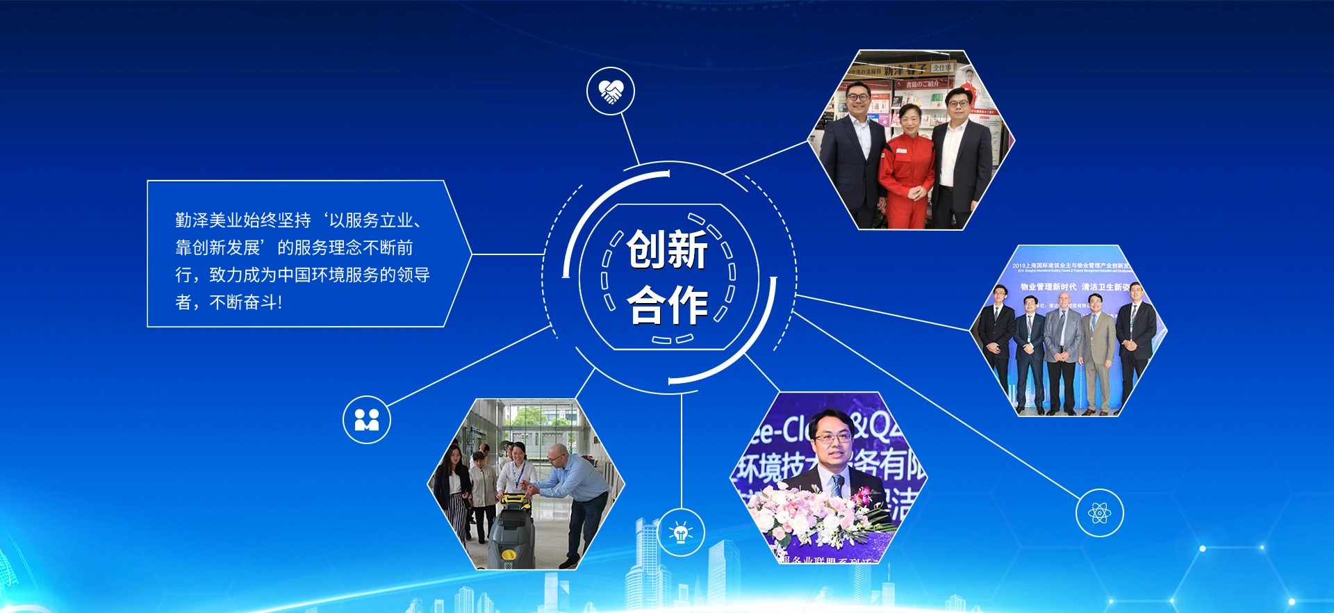 公司致力于把“勤澤美業”培育成眾口皆碑、令人尊敬、具有長期價值的服務領袖品牌。業務范圍涵蓋環(huán)境清潔和綜合設施管理服務,公司具備環(huán)衛、保潔、石材等多個行業一級資質,致力成為中國環(huán)境服務行業的領導者。